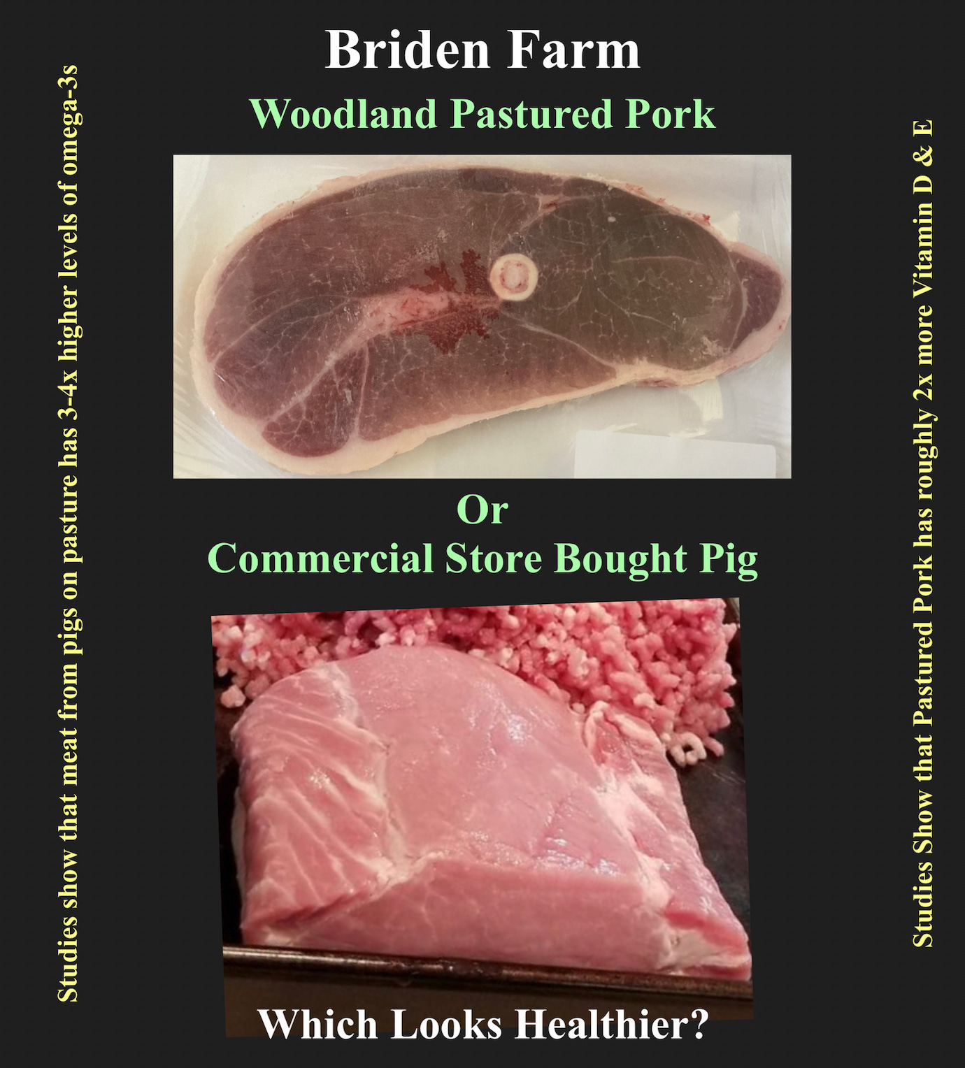 When pigs forage naturally, their meat changes. Studies and farmer-raised data consistently show woodland-pastured pork contains: